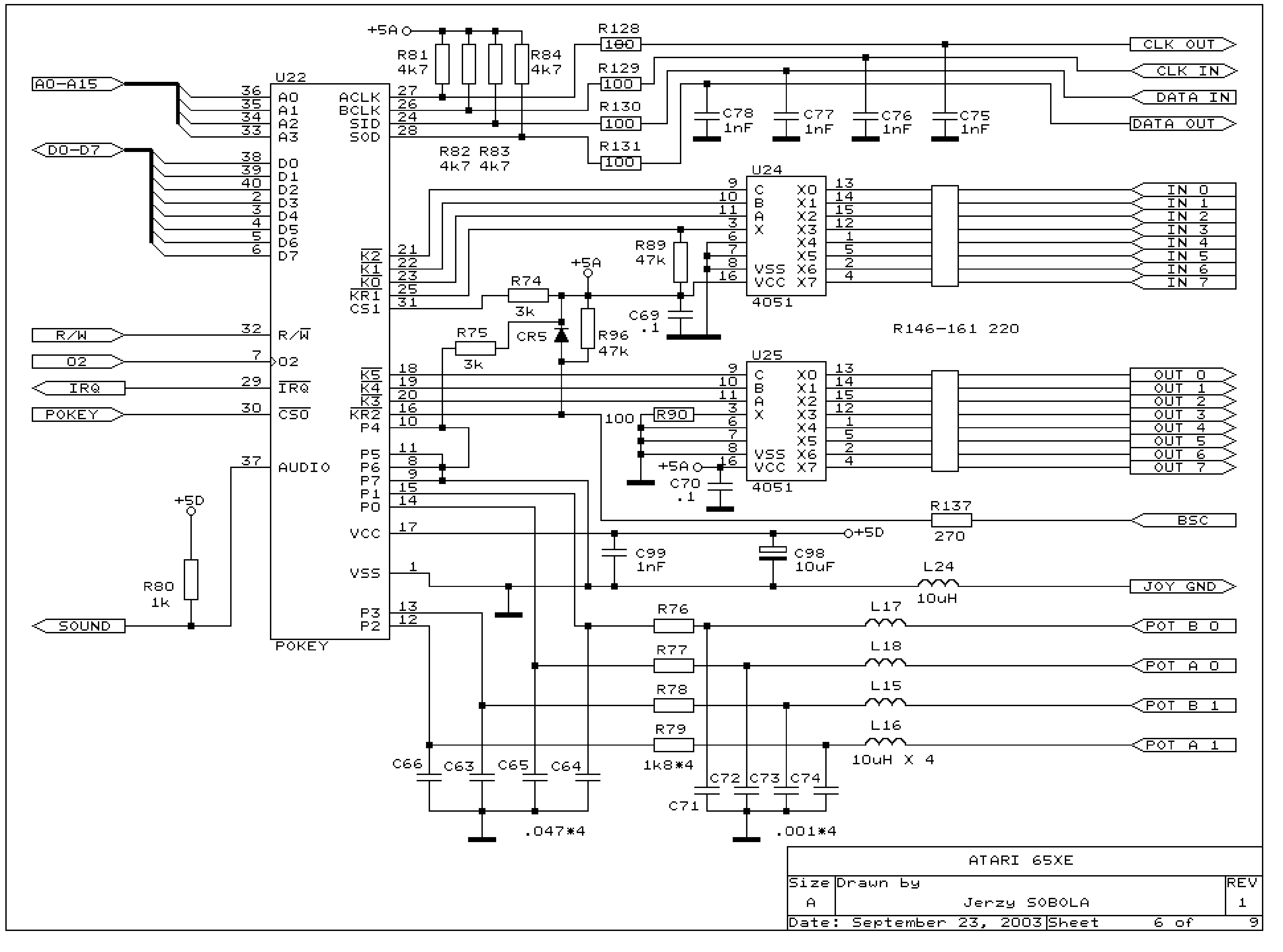 The Atari 65XE Schematics.
